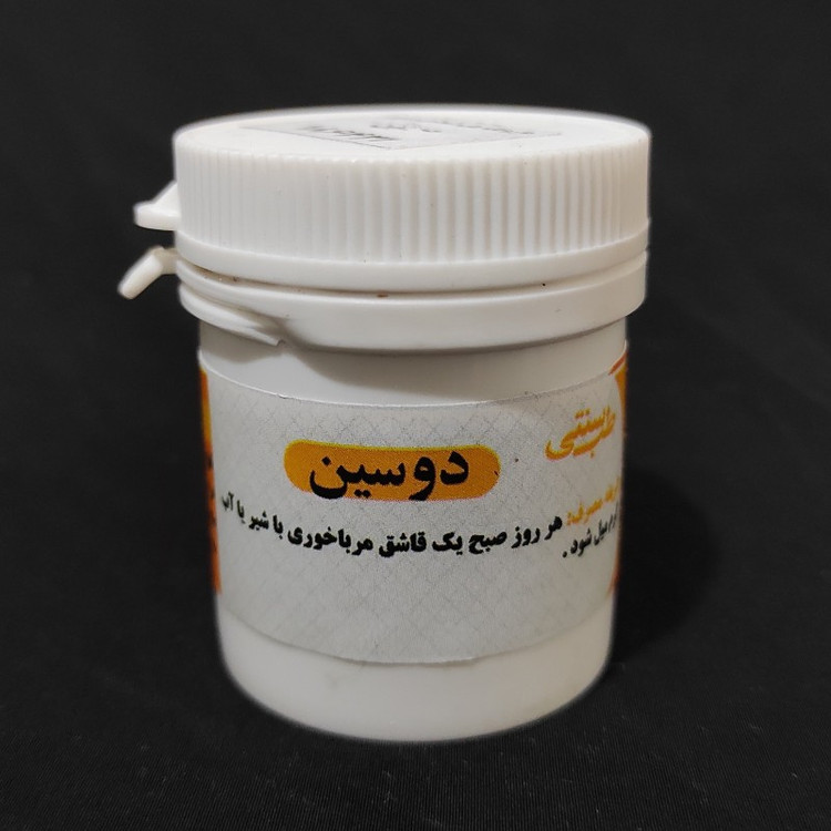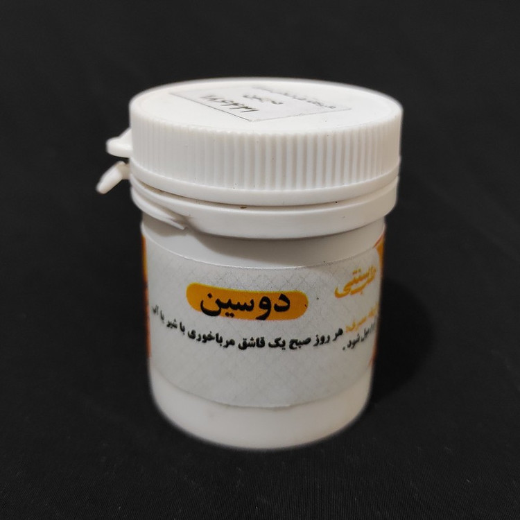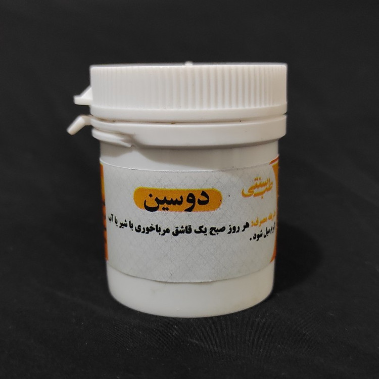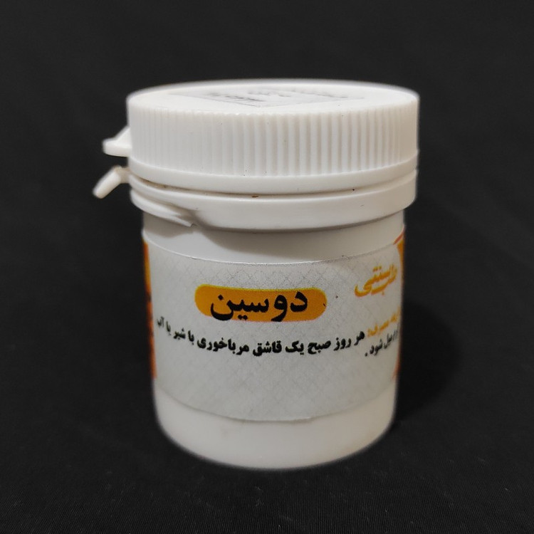 ۲ قوطی دوسین مفید در رفع درد مفاصل و استخوان؛ تقویت معده، کبد، طحال و کلیه؛ رفع ضعف عمومی بدن؛ تقویت قوای جنسی؛ ضد سرطان و آنتی بیوتیک 👌🏻 ممکنه بر اثر سرمای هوا در فصول سرد سفت تر شده باشه در اون صورت کنار حرارت غیر مستقیم مثل بخاری و شوفاژ قرار بدین تا شل تر بشه. چون عسل دوسین در سرمای مستمر ممکنه سفت بشه. 👈 دستور مصرف: هر روز صبح یک قاشق مرباخوری با شیر یا آب از اصلی ترین خواص این محصول می توان به تقویت سیستم ایمنی بدن، رفع سرماخوردگی، مفید برای تب های بلغمی و سوداوی، مناسب برای مشکلات ناشی از سردی و افزایش باروری در مردان و زنان اشاره نمود. مفید در رفع درد مفاصل و استخوان؛ تقویت معده، کبد، طحال و کلیه؛ رفع ضعف عمومی بدن 💥👇🏻💥👇🏻💥👇🏻💥👇🏻💥👇🏻💥👇🏻💥👇🏻💥👇🏻💥👇🏻 👌🏻مصرف یک دوره تا چهل روز این محصول مشکل خاصی در افراد سرد مزاج ایجاد نمی کند. البته بدن را گرم می کند پس افراد گرم مزاج با مشورت طبیب متخصص مصرف کنند. 👌🏻 ترکیب گیاهی لازمه توسط طبیب سنتی متخصص برمبنای معاینات تخصصی و غالبا حضوری تجویز بشه تا اثرات ناخواسته (عوارض) نداشته باشه و اگر مشیت خدا به بهبودی شخص باشه رفع بیماری و صحت حاصل بشه. 👌🏻👌🏻 بهبودی و علاج بیماری در طب فقط به خواست خداوند حکیم اتفاق می افته و هیچ طبیب حکیمی خود را معالج نمیدونه. با توجه به این نکات اطلاع داشته باشید ترکیبات گیاهی ما از مواد اصل و موثر تهیه شده و در صورت تجویز و انتخاب صحیح ان شاءالله کاملا موثراند؛ اثر ترکیبات گیاهی و هر ماده ای در افراد مختلف متفاوته و میزان اثرش به برخی شرایط بستگی داره که طبیب متخصص تشخیص میده؛ مثلا در صورت مصرف یک ماده گیاهی در دوره های بیش از یکی دو ماه معمولا به علت عادت بدن دیگه اثرش رو نخواهد داشت و برای اثر مجدد باید یه مدت مشخص مصرفش قطع بشه که بهش استراحت از مصرف ترکیب گیاهی میگن.