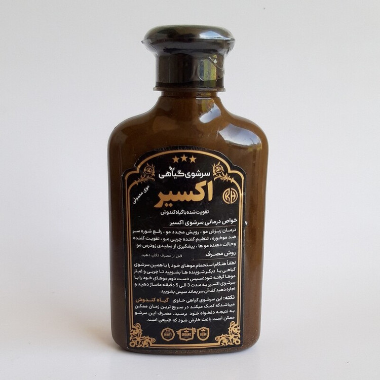 شامپو اکسیر گیاهی 🌱کمک به رفع ریزش مو در افراد سرد مزاج 🌱 کمک به رویش مجدد مو در افراد با مزاج سرد سر 🌱 رفع شوره سر 🌱ضد موخوره 🌱تنظیم کننده چربی مو 🌱 تقویت کننده و حالت دهنده موها 🌱 پیشگیری از سفیدی زودرس مو 📝نحوه مصرف: موقع استحمام موهای خود را با همین سرشوی گیاهی یا دیگر شوینده ها بشویید تا چربی و غبار موها گرفته شود، سپس دست دوم موهای خود را با سرشوی اکسیر به مدت 3 الی 5 دقیقه ماساژ دهید و اجازه دهید کف آن روی سر بماند سپس بشویید. 👌🏻 نکته: این سرشوی گیاهی حاوی روغن کندش میباشد که کمک میکند در سریع ترین زمان ممکن به نتیجه دلخواه خود برسید. 👌🏻مصرف این سرشو ممکن است باعث خارش سر شود که طبیعی است.